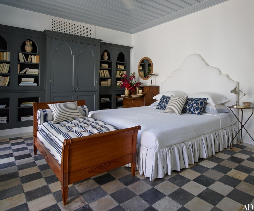 In questo progetto, il tadelakt è una scelta che torna con naturalezza nel Mediterraneo: intonaci minerali, superfici continue, materiali che lavorano bene con luce forte e uso estivo. Il punto non è la retorica della tradizione, ma il fatto che Moustroufis e López-Quesada impostano tutto il compound su un’idea di casa “naturale” nel senso pratico: muri in pietra locale, ombra, corti, ventilazione, arredi e tessuti che non hanno bisogno di effetti speciali per reggere la stagione.  Dentro questa logica, la doccia in tadelakt nero che abbiamo isolato è interessante proprio perché va contro l’automatismo più comune (tadelakt chiaro = bagno mediterraneo chiaro). Qui il nero è una scelta di progetto: taglia nel bianco, definisce la doccia come un volume unico e rende subito leggibile lo spazio dell’acqua, senza aggiungere materiali o cornici. E la curvatura fa il resto: mostra cosa sa fare davvero il tadelakt quando lo tratti come un materiale “da costruzione”, non come finitura da catalogo.