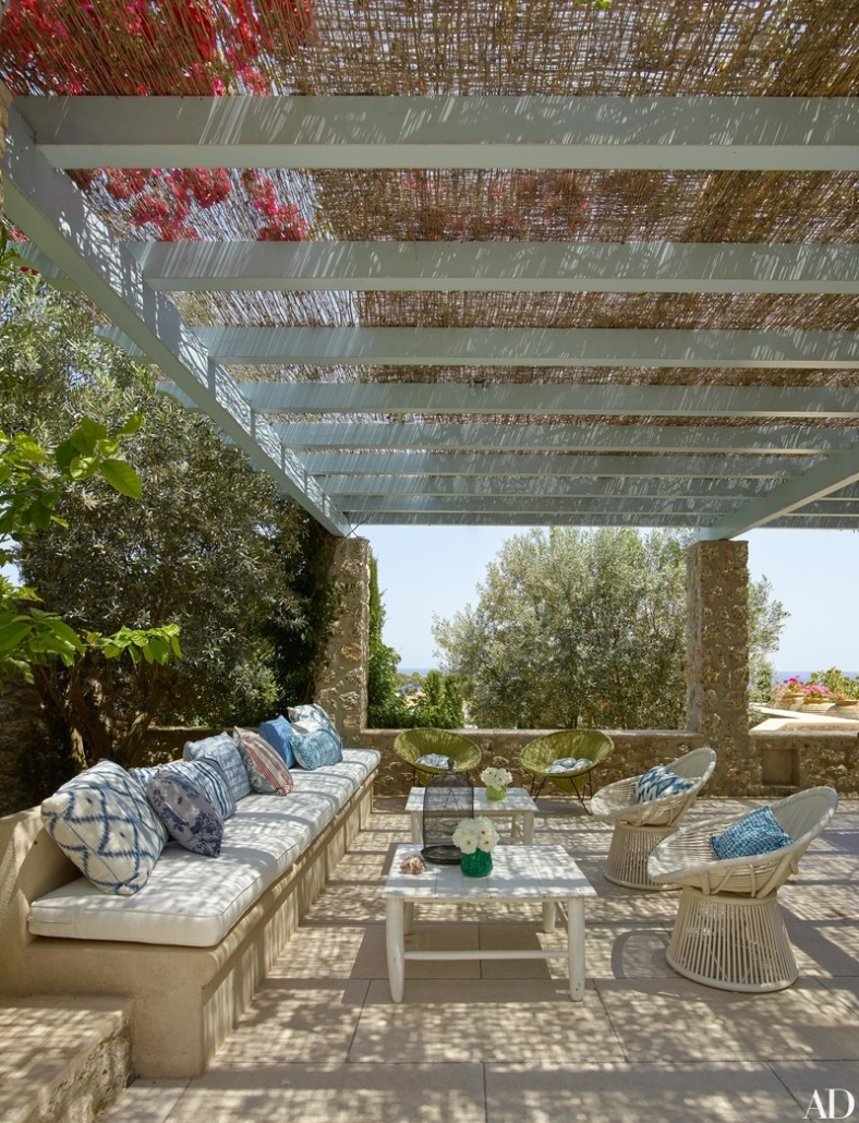 Sul piano architettonico, il progetto punta sulla continuità tra interno ed esterno. I percorsi non sono solo funzionali, ma parte dell’esperienza abitativa: soglie, terrazze, cortili e zone d’ombra diventano spazi vissuti, più che semplici collegamenti. È un’impostazione che deriva direttamente dalla tradizione costruttiva delle isole greche e che Moustroufis sceglie di non semplificare.