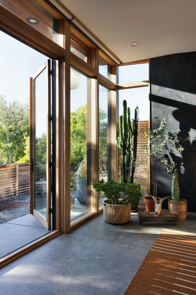 L’intervento di Dunford | Powell  Bedroom Addition si colloca a Salt Lake City, dove l’architettura residenziale lavora spesso sul controllo della luce e sull’inerzia dei materiali più che sull’isolamento totale degli ambienti. In questo quadro, l’uso del tadelakt nella camera da letto rappresenta una scelta consapevole e poco convenzionale. Il materiale, solitamente associato agli spazi umidi, viene impiegato per costruire un ambiente di riposo profondo, capace di assorbire la luce e stabilizzare la percezione dello spazio. Il colore scuro non è un gesto estetico, ma una risposta alla forte esposizione solare e all’ampiezza della stanza.