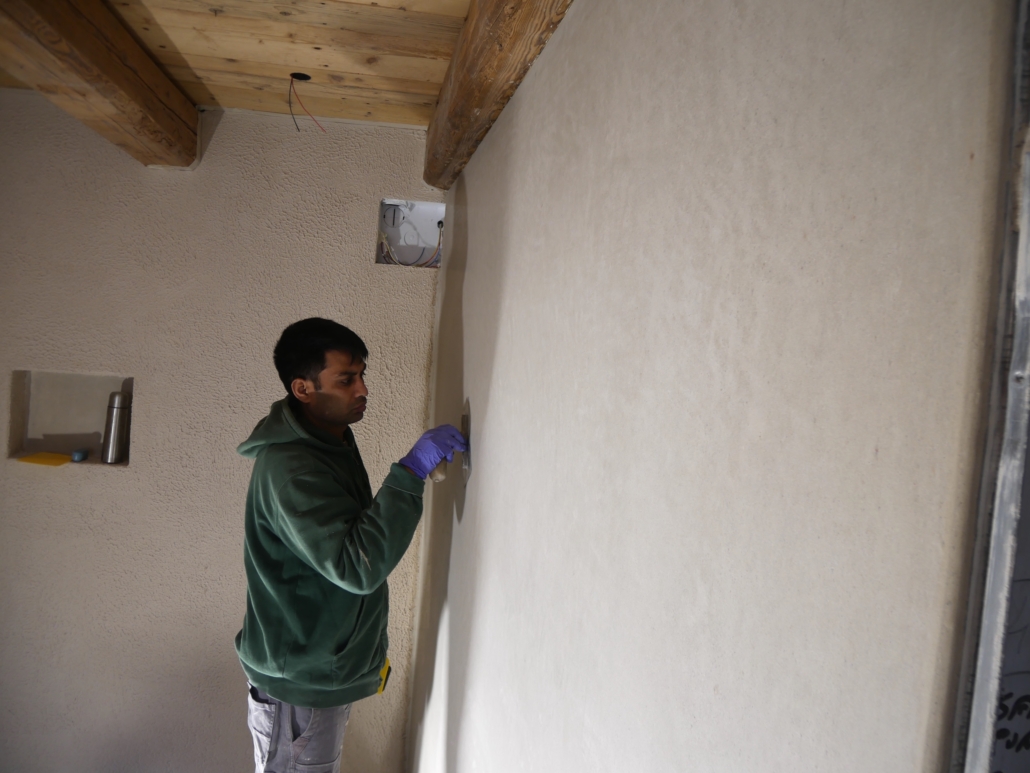 A differenza delle pitture murali industriali, nelle finiture decorative a calce applicate con il frattazzo la pressione esercitata è un elemento determinante. È ciò che comunemente viene riassunto con l’espressione “la mano dell’artigiano”, ma che in realtà racchiude una serie di scelte consapevoli e continue durante la lavorazione.