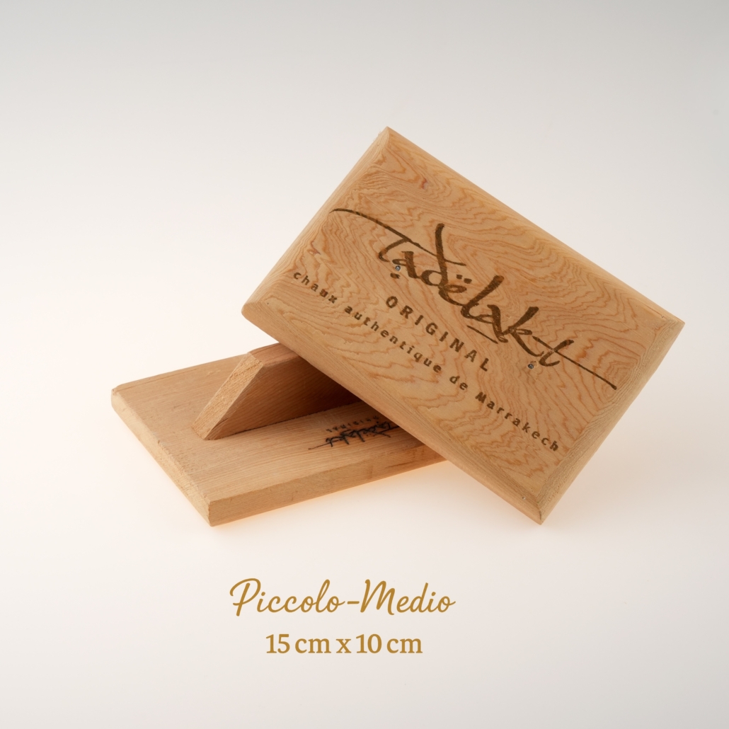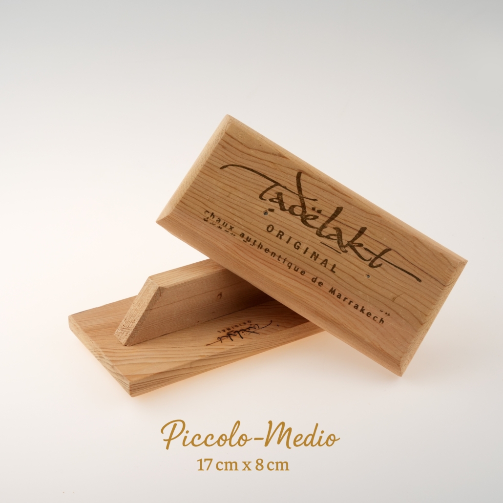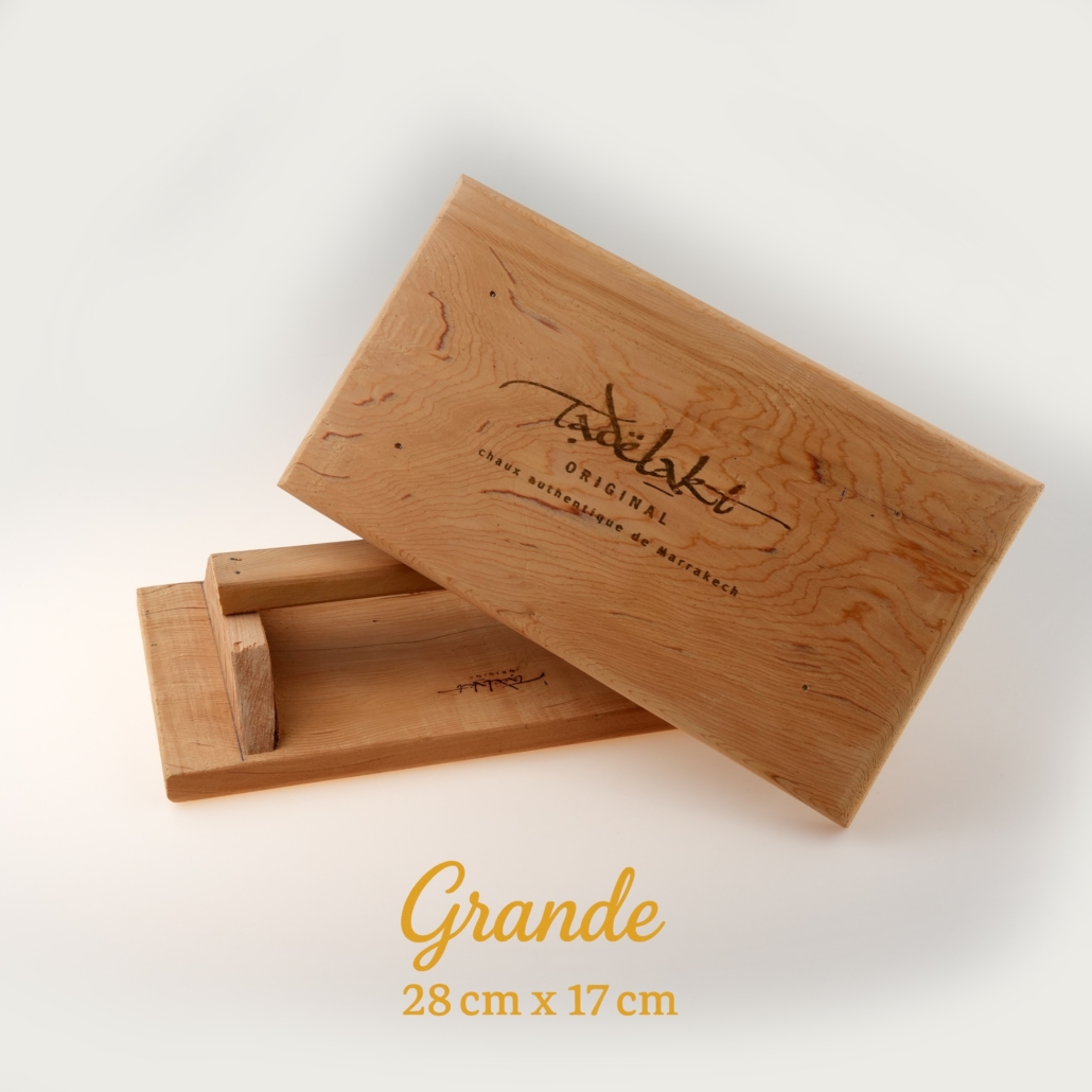 Il frattazzo in legno di cedro si impiega durante la fase di stesura della calce di Marrakech, quando il materiale è ancora morbido e lavorabile. La sua fibra naturale non graffia la calce e non ne altera la struttura, rendendolo ideale per tutte le fasi iniziali della lavorazione del Tadelakt. Si utilizza su pareti, pannelli di prova o oggetti, sempre mantenendo un ritmo costante e una pressione controllata per favorire la corretta compattazione del materiale. Sono disponibili in diversi formati in base al tipo di lavoro da realizzare: