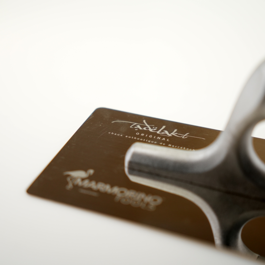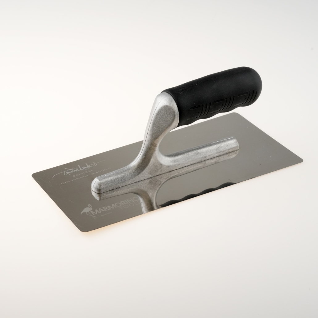 Il frattone in acciaio è ideale per dare al Tadelakt un tocco più “moderno”, permettendo una stesura e una lucidatura estremamente precisa. La sua lama sottilissima da 0,5mm e ultra flessibile consente di ottenere superfici molto compatte e uniformi, un risultato che gli strumenti tradizionali in legno non possono garantire. Disponibile in misura: