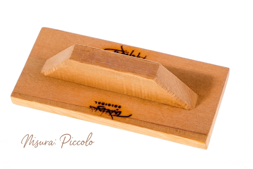 Il cedro dell’Atlante, resistente e leggero, garantisce un contatto naturale con la calce e consente una stesura uniforme senza alterare la struttura del materiale. Ogni frattazzo nasce dalla lavorazione manuale degli artigiani di Marrakech, seguendo una tradizione che rende questi strumenti parte integrante della tecnica originale del Tadelakt.
