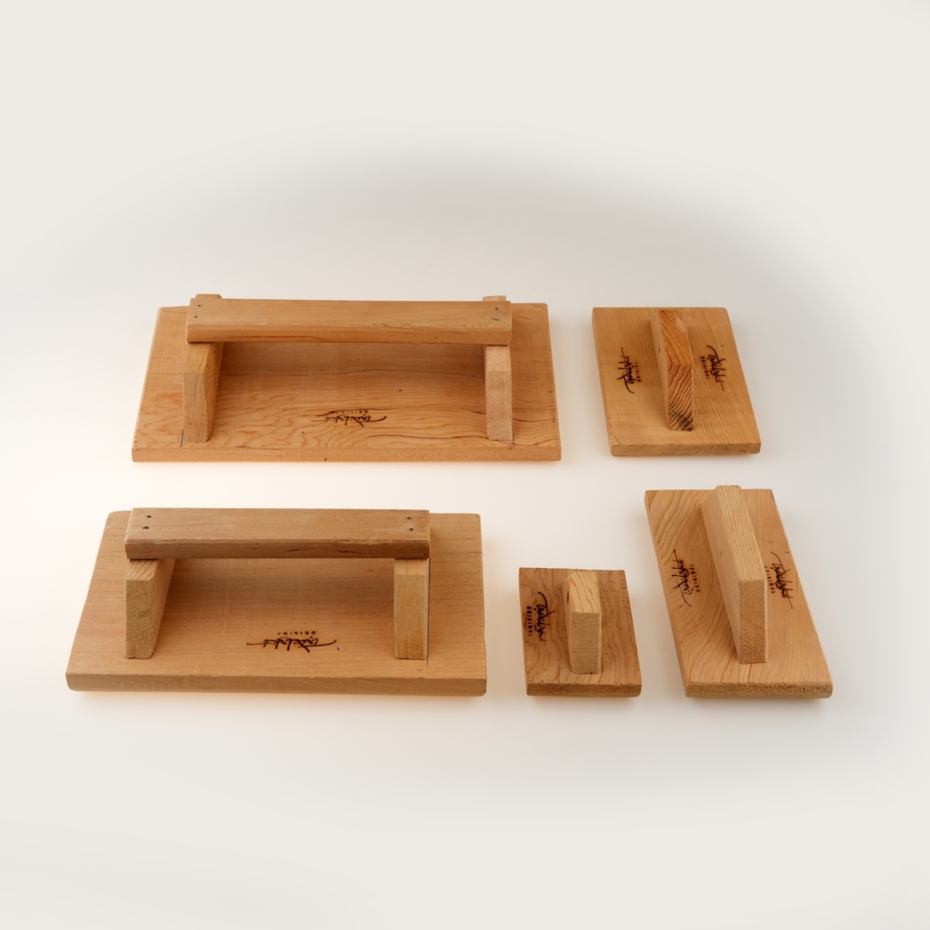 Kit di 3 o 5 Frattazzi in legno di cedro. Si utilizzano per appoggiare la calce prima di applicarla con la cazzuola e per distribuire il materiale sulla superficie di lavoro.