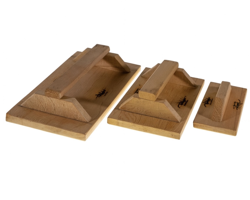 Questo Kit riunisce tre Frattazzi tradizionali in legno massiccio di cedro dell’Atlante, lo stesso che cresce sulle montagne da cui proviene la calce utilizzata per il Tadelakt. Ogni pezzo è pensato per una fase diversa della lavorazione: il piccolo permette di raggiungere angoli, nicchie e superfici strette, il medio assicura precisione nelle zone più articolate, mentre il grande offre la massima stabilità per pareti ampie e pannelli più estesi. Insieme formano un set completo, capace di adattarsi a qualsiasi geometria o dimensione.