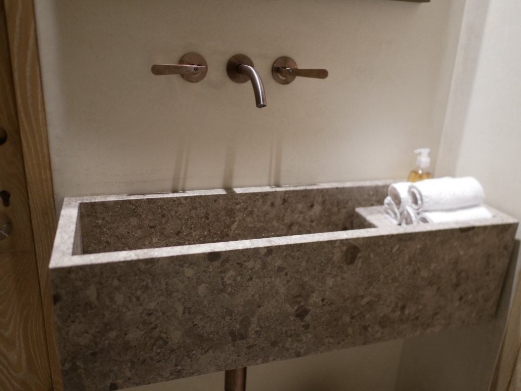 La lavorazione si è svolta in più fasi, con tempi dilatati e grande attenzione alla preparazione dei supporti, alla scelta delle tonalità e alla gestione dell’umidità degli ambienti. Un progetto impegnativo, che ha richiesto precisione, organizzazione e continuità nel lavoro, ma che ha permesso di valorizzare appieno le potenzialità del Tadelakt in un contesto di alto livello.