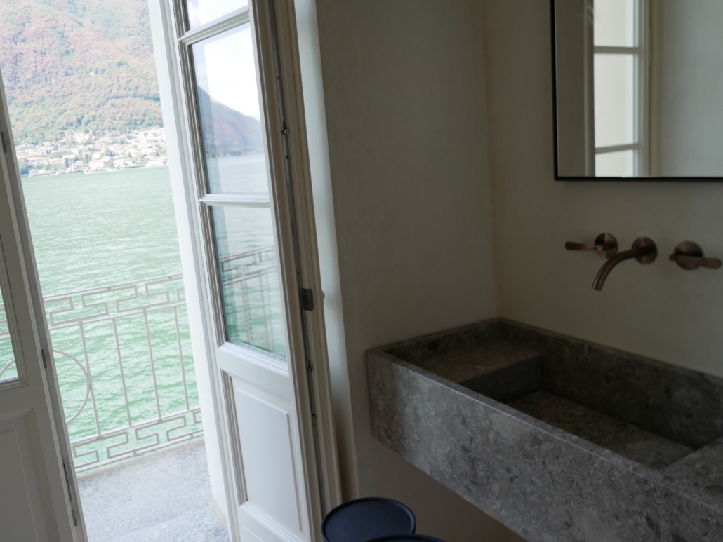 All’inizio del lavoro la villa era stata acquistata da poco dal nuovo proprietario, che aveva avviato una ristrutturazione completa dell’intero complesso. Il progetto coinvolgeva ogni parte dell’edificio: gli interni, le facciate, il giardino e anche lo scalo sul lago, con l’obiettivo di riportare la villa a un alto livello qualitativo, sia dal punto di vista tecnico che estetico.