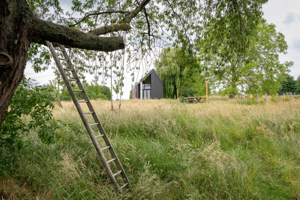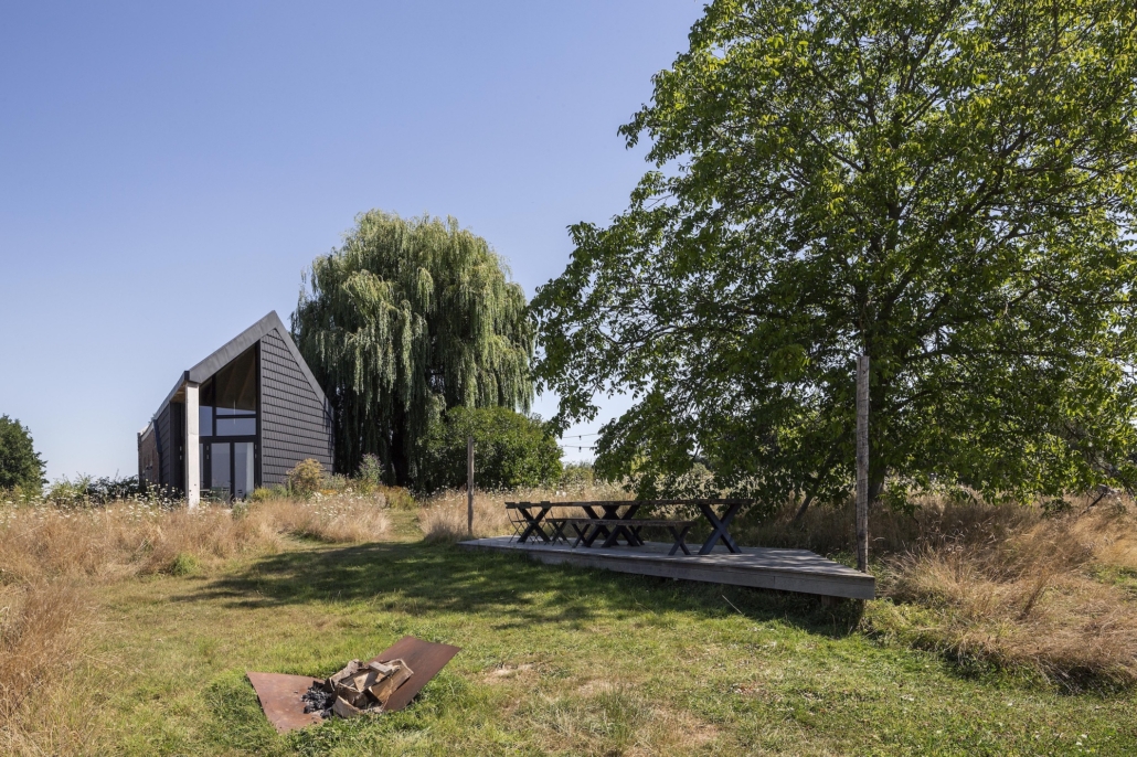 In Under the Willow Tree House, le scelte legate alla bioedilizia non sono concentrate in un singolo elemento, ma distribuite in modo continuo lungo tutto il progetto. L’isolamento delle pareti viene realizzato con canapa e calce, una combinazione che permette di ottenere massa, traspirabilità e durabilità senza ricorrere a materiali sintetici. Non è una scelta “di principio”, ma pratica: la casa deve gestire umidità, temperatura e aria interna in modo naturale. La stessa logica guida l’uso della cellulosa nell’isolamento del tetto, materiale che lavora bene con gli sbalzi termici e riduce il bisogno di correzioni meccaniche.