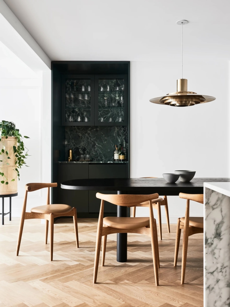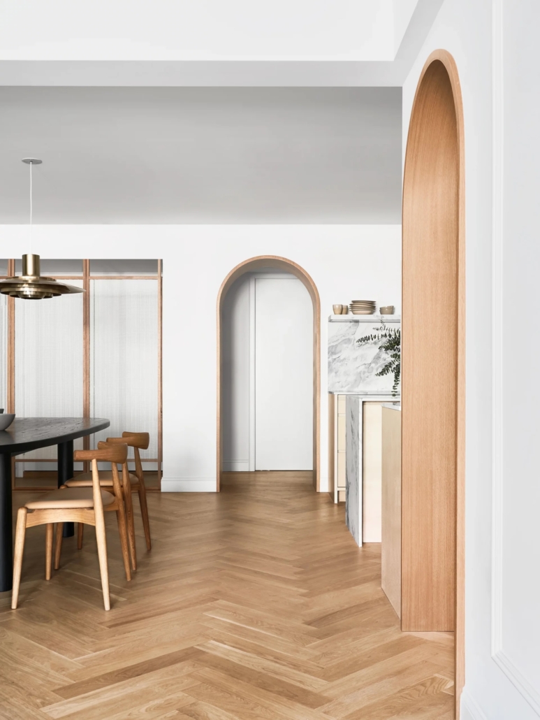 Worrell Yeung affronta la ristrutturazione come un lavoro di ridefinizione interna, non come un semplice restyling. La distribuzione viene rivista per chiarire i percorsi, migliorare la fruibilità degli spazi privati e pubblici e aumentare la continuità visiva tra le diverse stanze dell’appartamento. Uno degli obiettivi principali è la riduzione della frammentazione. Pareti, soglie e passaggi vengono trattati come elementi architettonici veri e propri, non come semplici divisori. Questo permette di leggere l’appartamento come un insieme coerente, pur mantenendo la distinzione funzionale tra le aree.