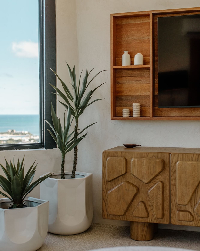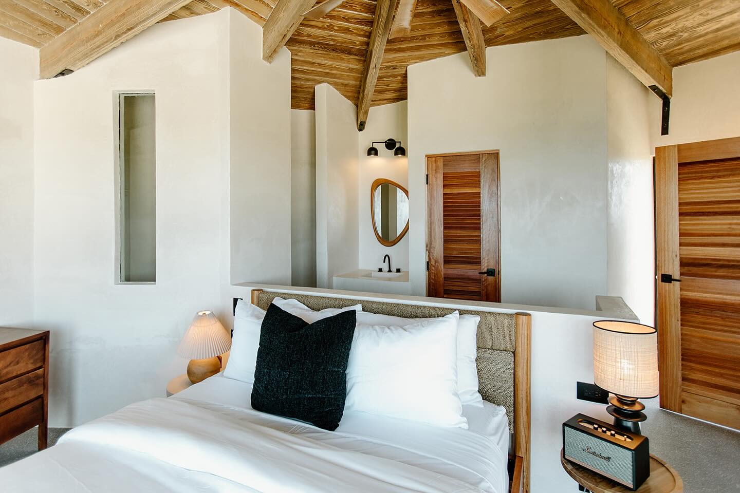 In Skyhawk Villa, il tadelakt non è un riferimento decorativo né un richiamo generico a tradizioni lontane. È un materiale scelto e usato in modo sistematico da un architetto che interviene sulla propria casa, in un contesto climatico che richiede superfici continue, traspiranti e durevoli. La sua estensione dalla camera da letto al soggiorno dimostra una volontà chiara: costruire l’interno con pochi materiali, portati fino in fondo, senza gerarchie artificiali tra arredo e architettura.