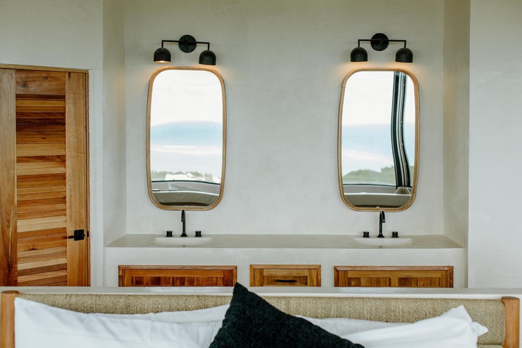 Skyhawk Villa è il risultato di una ristrutturazione che lavora per sottrazione e continuità, più che per aggiunta. Il progetto di Chris Pardo parte da un edificio con una forte identità storica e paesaggistica e lo aggiorna senza snaturarlo, intervenendo su luce, superfici e materiali per adattarlo a un uso contemporaneo. Il contesto dei Caraibi, con il suo clima estremo, l’umidità costante e la luce intensa, non viene mitigato artificialmente ma assunto come condizione di partenza. All’interno di questo quadro, l’uso del tadelakt appare tutt’altro che forzato. È vero che si tratta di una tecnica nata lontano, in Marocco, ma le condizioni ambientali per cui è stata sviluppata (calore, umidità, necessità di superfici continue e traspiranti) non sono così diverse da quelle di un’isola come St. Croix. In questo senso, il materiale non viene “importato” come linguaggio esotico, ma reinterpretato come soluzione adatta al luogo. Il modo in cui il tadelakt viene utilizzato in Skyhawk Villa, nella camera da letto e nella zona giorno, fino a costruire vasche, lavabi, piani e nicchie, conferma una tendenza sempre più evidente anche in Occidente. Nei progetti di architettura sostenibile e bioedilizia di fascia alta, soprattutto in contesti climaticamente complessi, il tadelakt trova spazio per la sua durabilità, per la riduzione della complessità costruttiva e per la sua capacità di fondere architettura e arredo.