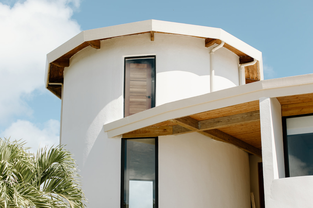 Skyhawk Villa nasce come un’architettura atipica per il contesto caraibico. L’impianto originale è composto da due torri separate, collegate da un passaggio sopraelevato, una soluzione che riflette l’interesse per la vista panoramica più che per la compattezza volumetrica. Questa configurazione, affacciata direttamente sulla baia di Christiansted, è uno degli elementi che la ristrutturazione ha scelto di preservare.