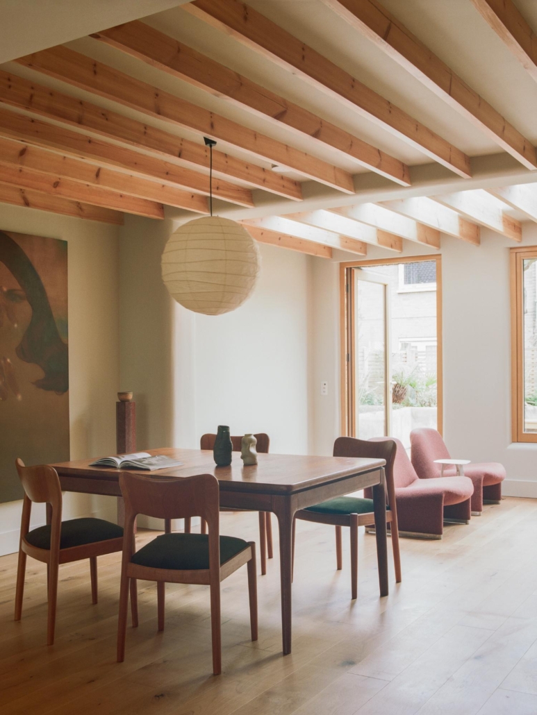 La casa era originariamente un terraced house post-bellica con una pianta segmentata e soffitti bassi, caratteristiche che limitavano profondamente la luce naturale e la fluidità spaziale. Per affrontare queste limitazioni, Flawk e NIKJOO hanno impostato il progetto come una trasformazione ampia ma mirata, concentrandosi su pochi interventi chiave che potessero massimizzare la qualità spaziale senza ricorrere a processi di pianificazione complessi.